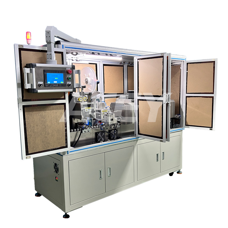 안전 커버가 장착된 ACEY-ASM-1C 자동 수축 슬리브 기계는 원통형 배터리 셀의 효율적인 완전 자동 슬리빙을 위해 설계되었습니다. 보호 케이스가 장착되어 있어 고속 정밀 슬리브 적용, 절연 패드 삽입 및 균일한 열 수축을 제공하는 동시에 안전한 작동을 보장합니다.